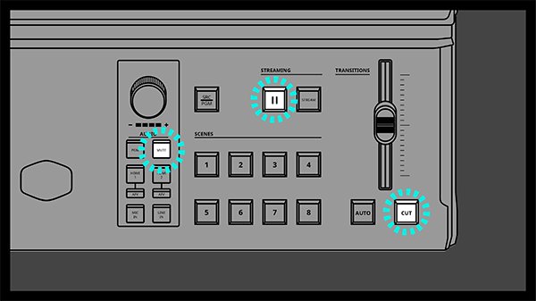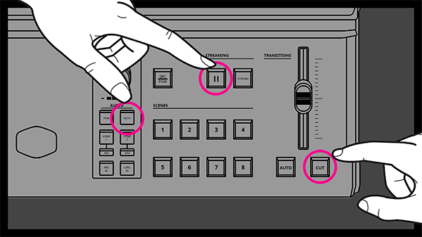 3. The Mute, Pause, and Cut button lights will turn on when pressed.