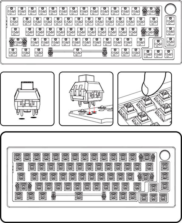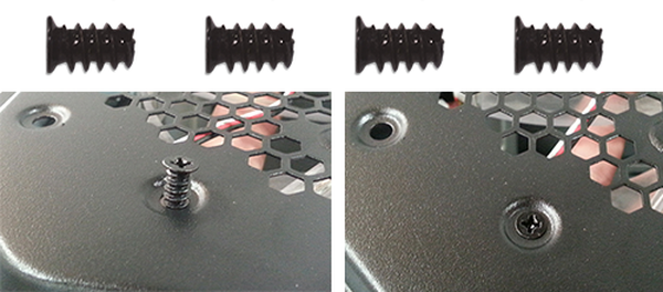 1. Align the fan to the correct holes as shown below