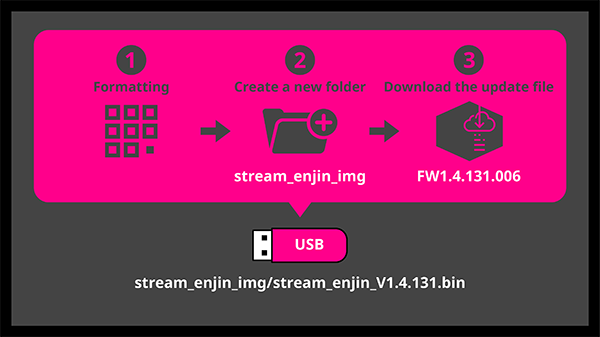 1. Download the firmware file onto your USB drive. Connect the USB drive to the USB port on your StreamEnjin.