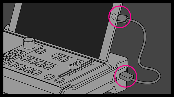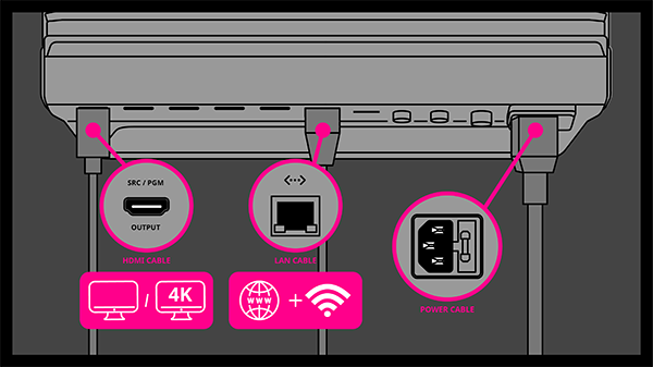 2. Connect the SRC/PGM output monitor, ethernet cable, and power to the StreamEnjin