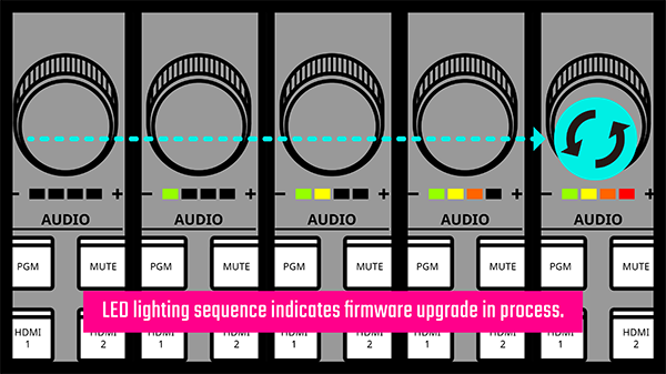 5. The Volume LED lights will light up and cycle through in the following sequence to indicate firmware upgrade is