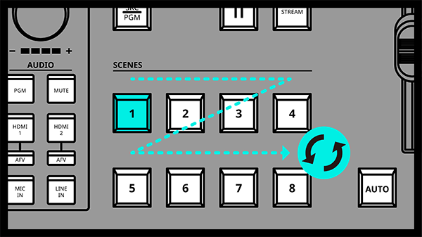 8. The Scenes lights will cycle through in sequence from 1 to 8