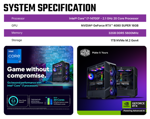 Purpose-built for racing enthusiasts, the Cooler Master TD5 PRO i7 Workstation enables precision control and detailed realism in every simulation. Whether you're training, competing, or simply racing for fun, this system offers a stable, high-performance platform for lifelike, uninterrupted experiences on the Dyn X racing simulator.