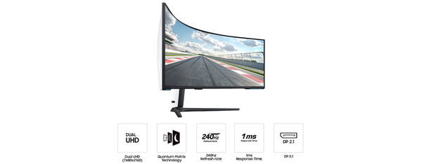 Featuring a 57" screen with 1000R curve, 1ms response time, 120Hz refresh rate, and extensive color support, including DCI-P3 at 98% this monitor can be your go-to for any application. And it's built-in KVM switch helps you flip from laptop, desktop or console in a flash.