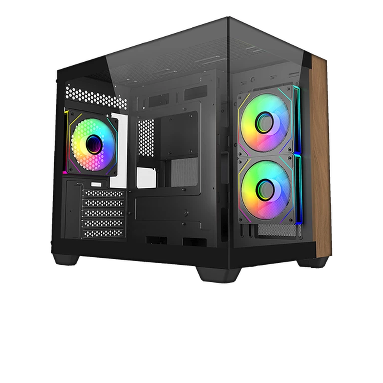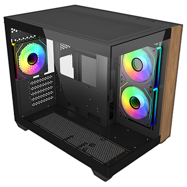 The Elite 481 Wood brings a warm, home-friendly aesthetic to high-performance PC builds. Featuring a compact dual-chamber mATX layout and a front panel crafted from real natural wood, it blends modern performance with organic design elements. With seamless tempered glass panels, vertical cooling support, and full-size radiator compatibility, the Elite 481 Wood is a versatile chassis that fits effortlessly into living spaces, creative studios, or stylish gaming setups.