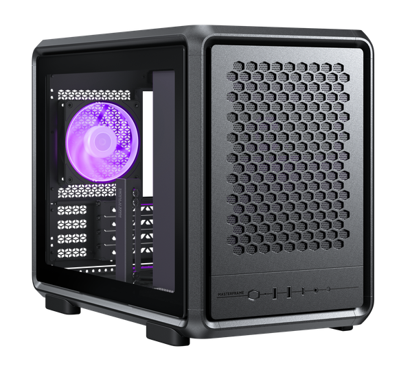 Despite its compact size, the MasterFrame 400 Mesh comes alive with a pre-installed 120 mm SickleFlow ARGB fan—quiet, powerful, and fully customizable.