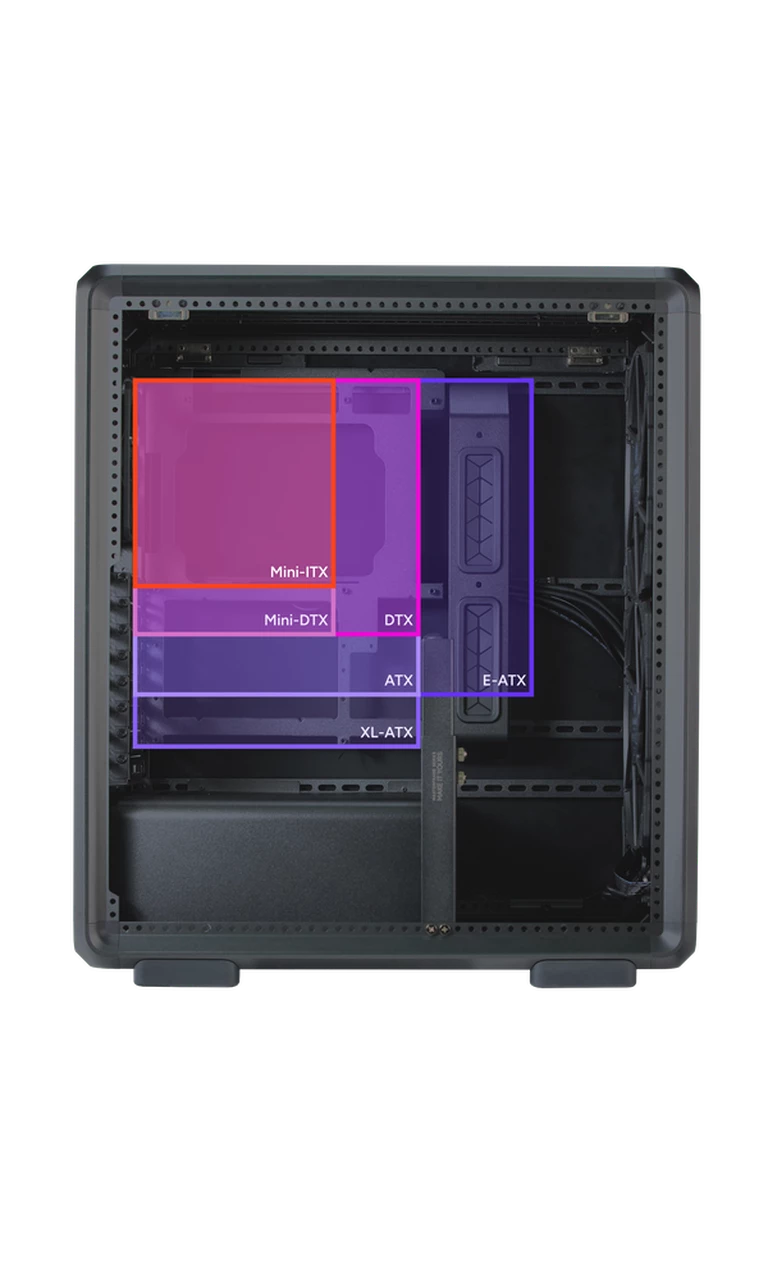 Supports Mini-ITX to E-ATX motherboards, offering compatibility with a wide range of builds and configurations.